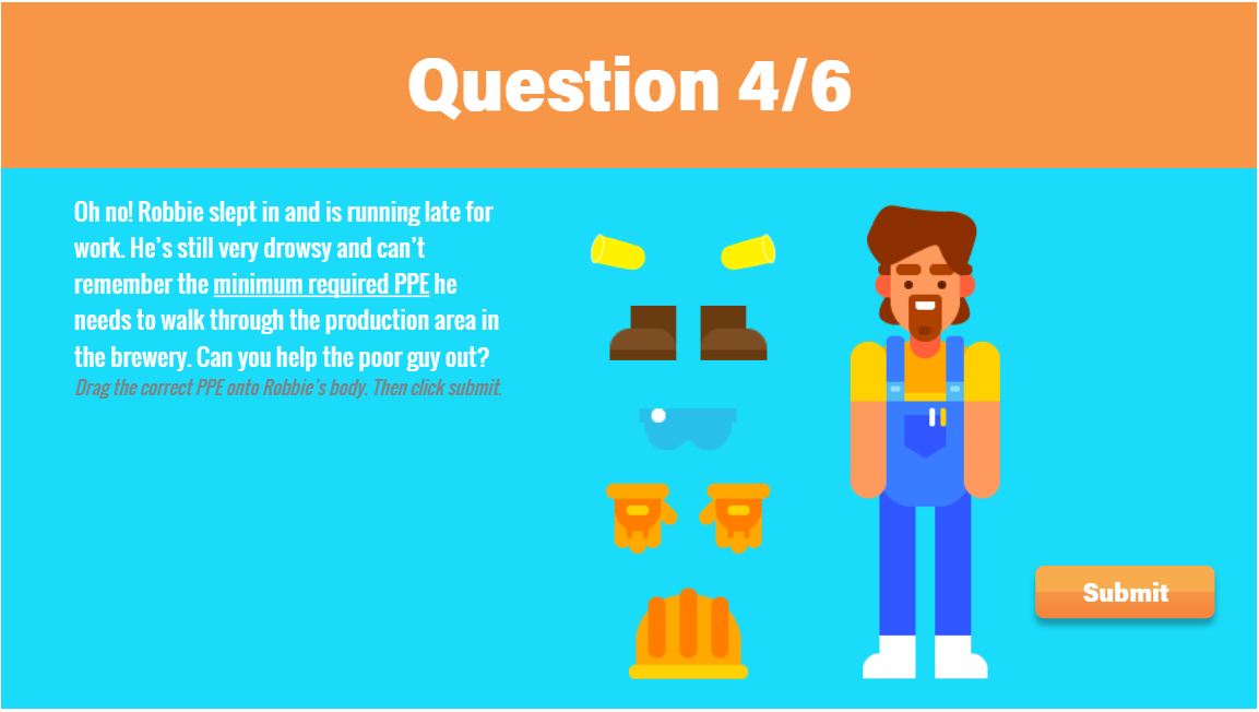 In partnership with the Safety Manager and Training Systems Manager, I re-imagined safety training for temporary workers by creating a gamified learning experience. I leveraged instant auditory feedback and low-risk, timed interactions to actively engage learners and reinforce key concepts. These elements are designed to sustain attention, encourage exploration, and create a safe environment for learners to practice and apply new knowledge.